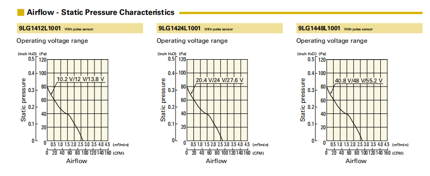 山洋长寿命轴流风扇 9LG1448L1001 产品P&Q曲线: