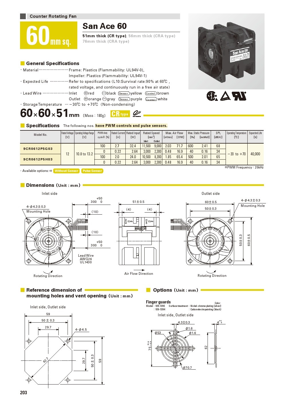 “健策电子”中国区总代理San Ace山洋散热风扇,此款风扇尺寸:60*60*51mm 有运转电压:12V寿命均达40000H ,温度范围:-10-+70度。