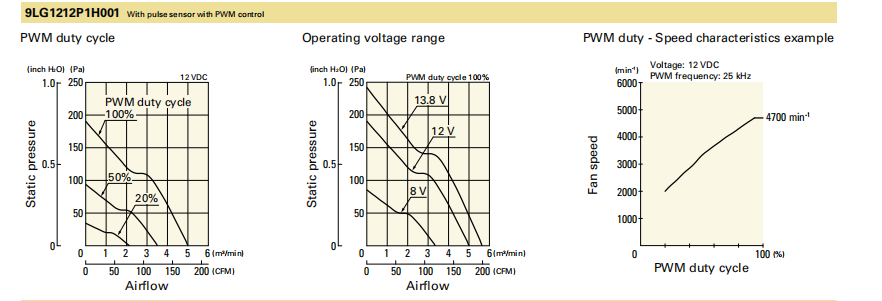 山洋长寿命轴流风扇 9LG1212P1H001 产品P&Q曲线: