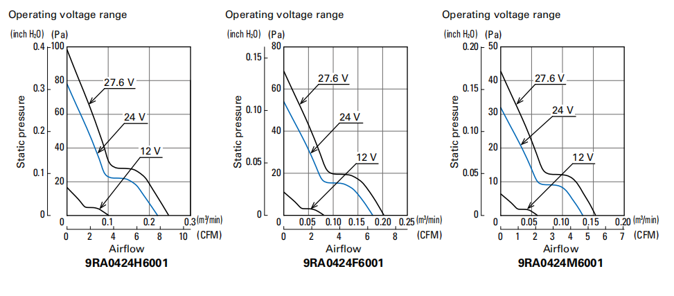 | 9RA0424M6001 | DC Fan | 40 | 20 | 24 | 0.018 | 0.44 | 5000 | 0.13 | 4.5 | 32 | 0.128 | 17 | 60000/60℃ (90000/40℃) | Pulse sensor | No |